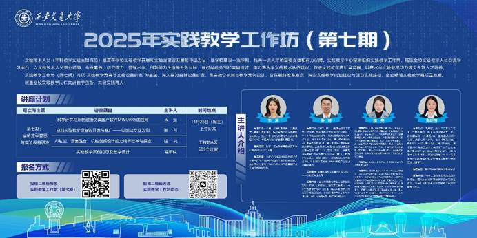 2025年11月26日,西安交通大学实践教学中心举办实践教学工作坊(第七期)——以“实验教学竞赛与实验设备研发"为主题,深入探讨自制设备研发、课实融合机制与教学案例设计,旨在破解改革难点,探索实验教学内涵建设与创新实践路径,全面赋能实验教学高质量发展。