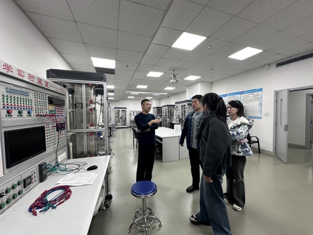 会议结束后,华中科技大学的老师们在张老师的陪同下,实地参观了教学实验中心的多个实验室。在热测实验室,双方就转速、流速测量实验台的技术细节与教学应用进行了现场交流。在自动控制实验室,到访教师对我校根据实际教学需求订制的实验设备表现出浓厚兴趣,详细询问了其设计思路与使用效果。